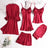 Women’s Satin Pajama Set – Lace Trim Sleepwear with Robe and Pants