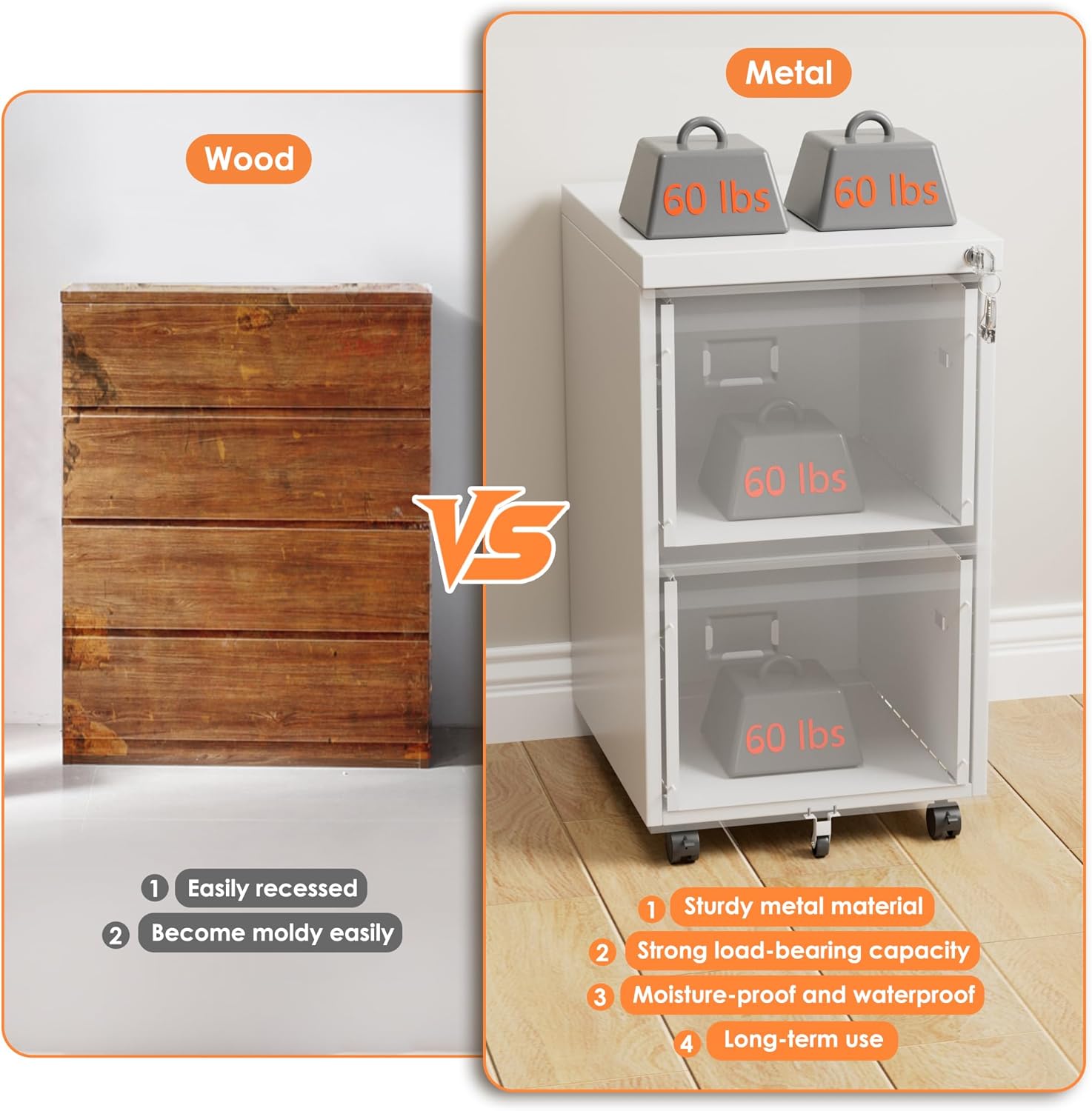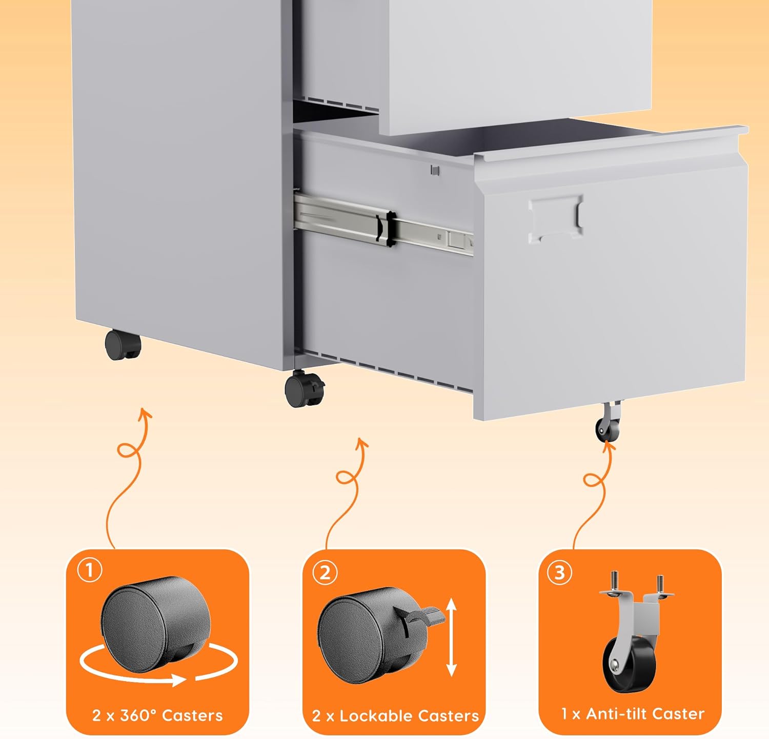 • Easy Assemble - This metal filing cabinet is knock down structure, we provide the step by step manual that help customer assemble the cabinet.