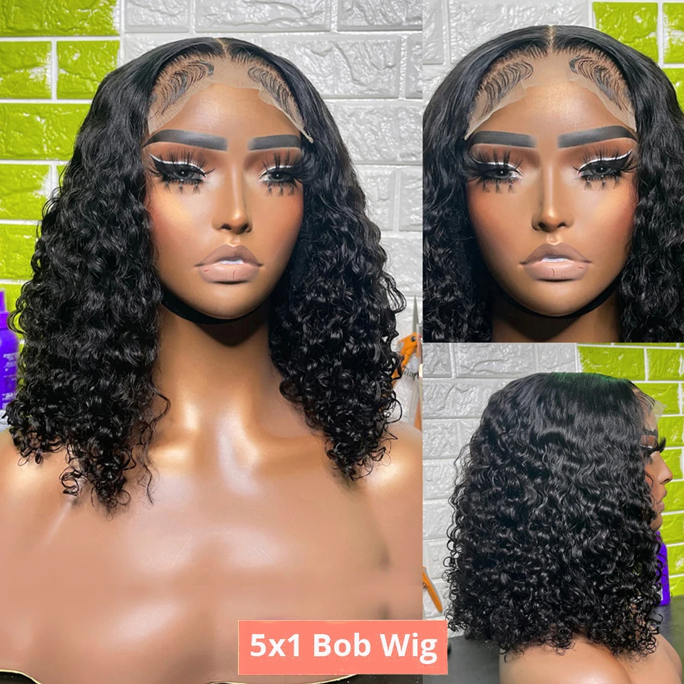 Brazilian Water Curly Bob Wig – 250 Density Glueless Human Hair Deep Wave Wig with HD 13x4/13x6 Transparent Lace Front