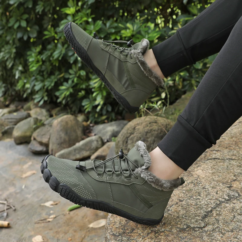 Winter Snow Boots for Men & Women – Warm Fur Lined Barefoot Ankle Boots | Casual Outdoor Work Shoes for Cold Weather