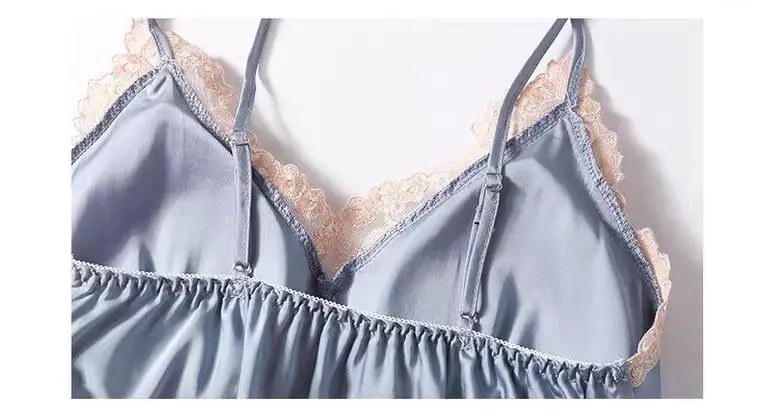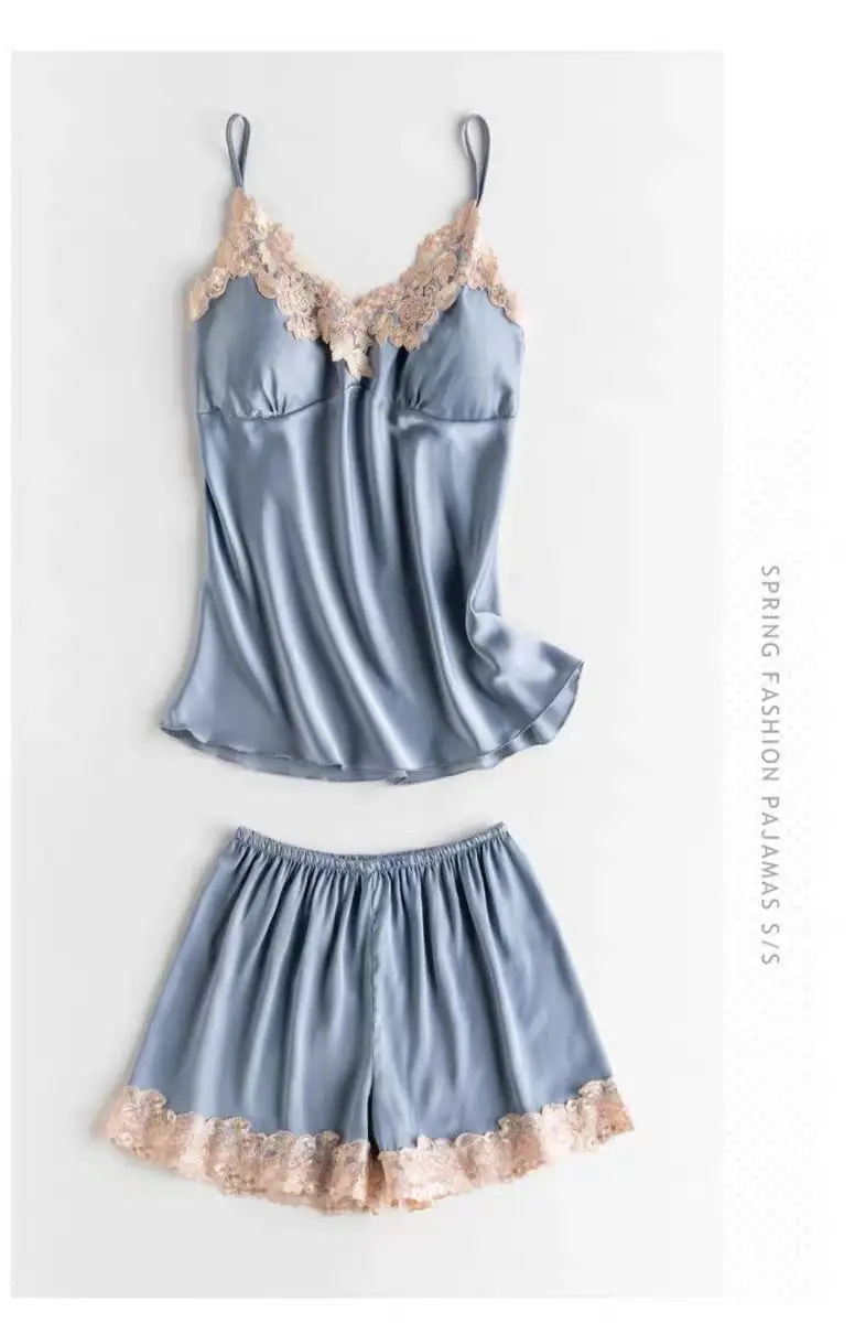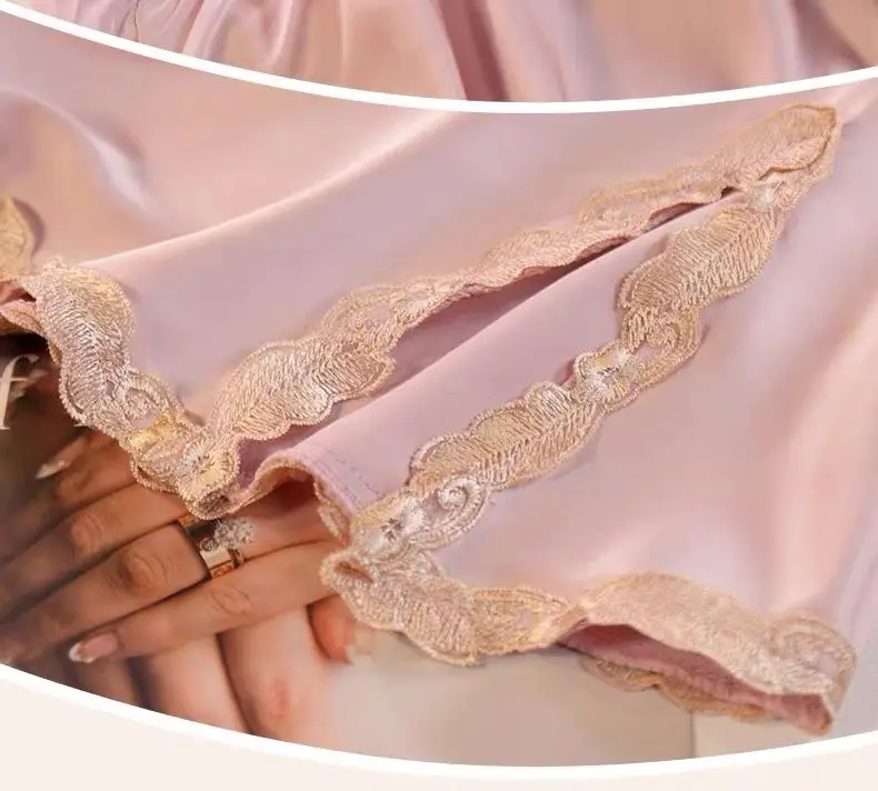 Women’s Satin Pajama Set – Lace Trim Sleepwear with Robe and Pants - Set9 / 2XL(65-72.5kg) / CHINA is backordered and will ship as soon as it is back in stock.