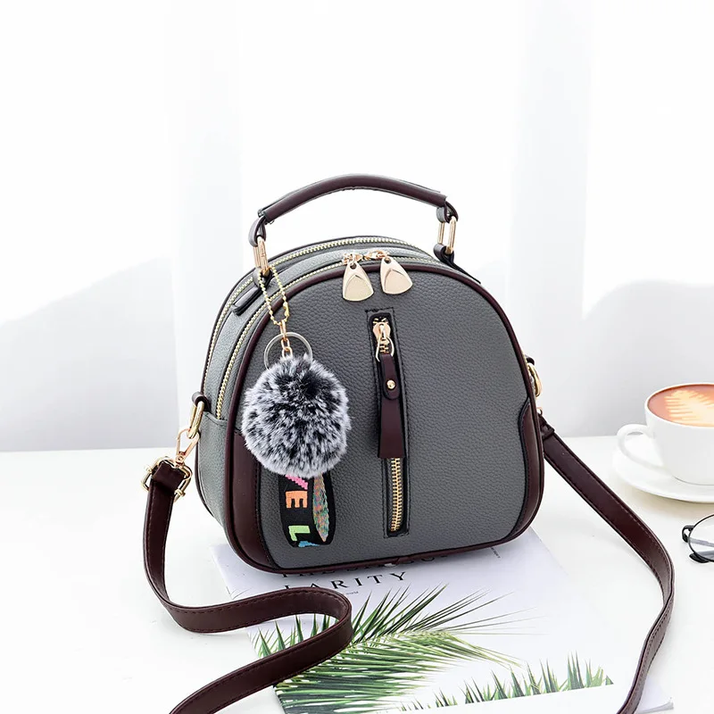 PU Leather Women’s Small Handbag – Fashion Crossbody Shoulder Bag with Hairball Charm | Luxury Ladies Messenger Tote