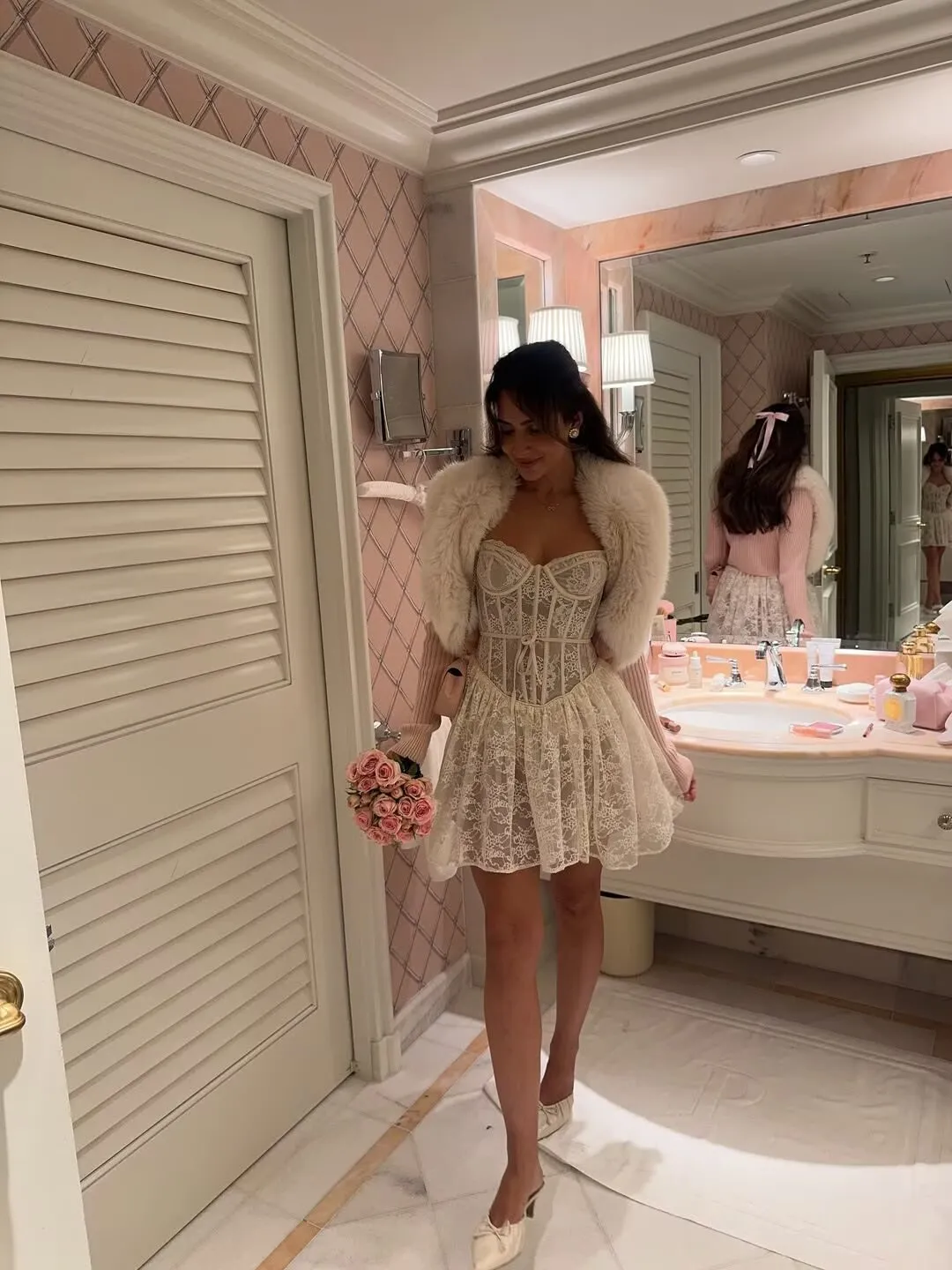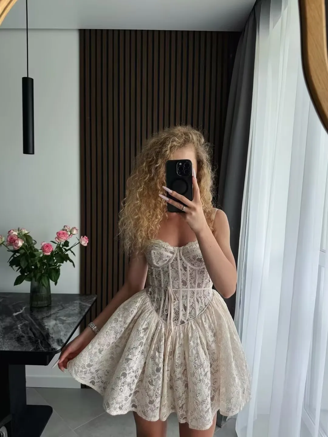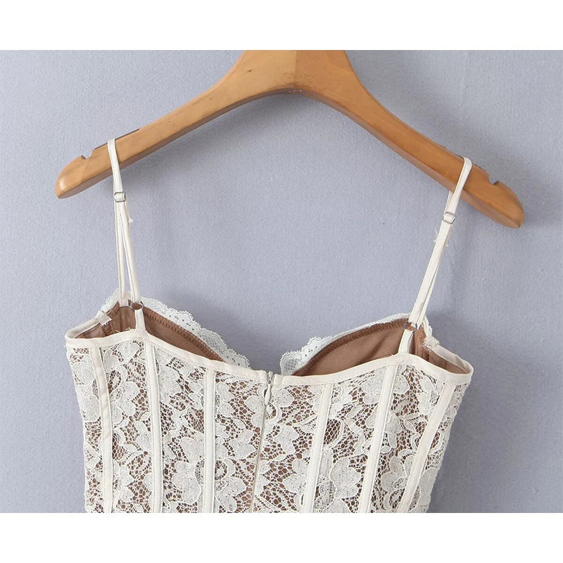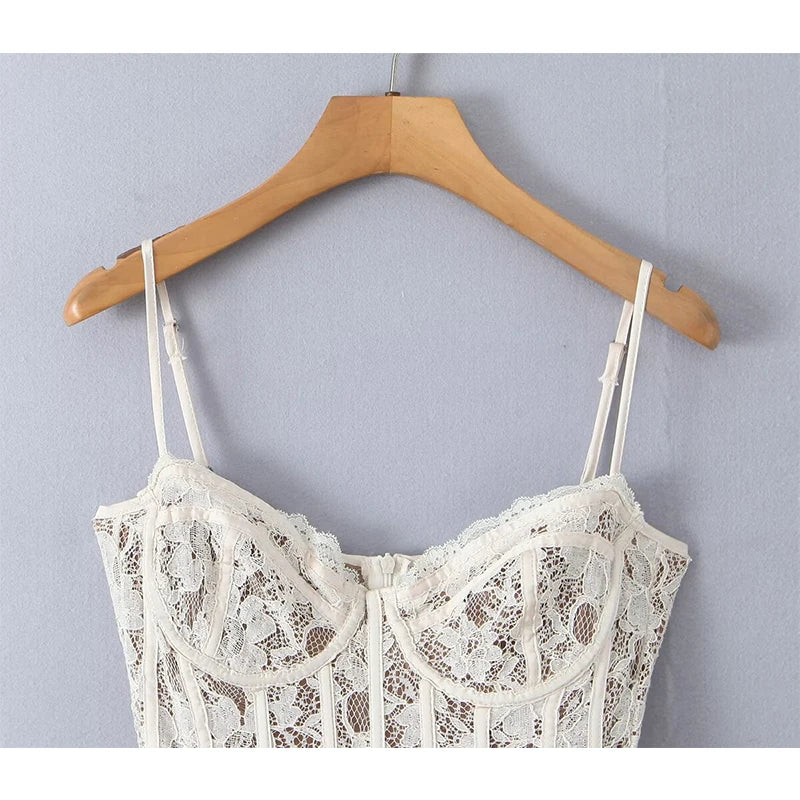 YENKYE Women Sexy Elegant Lace Sling Mini Dresses Fashion Low Waist Fit And Flare Party Dress Female Robe