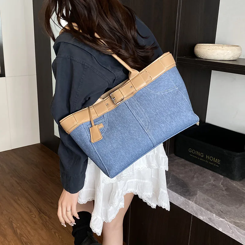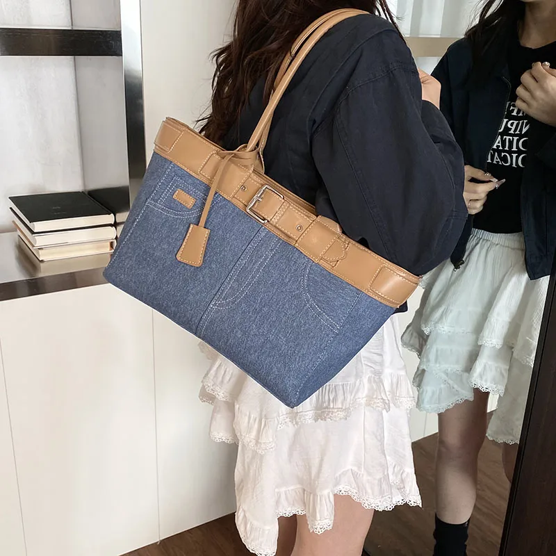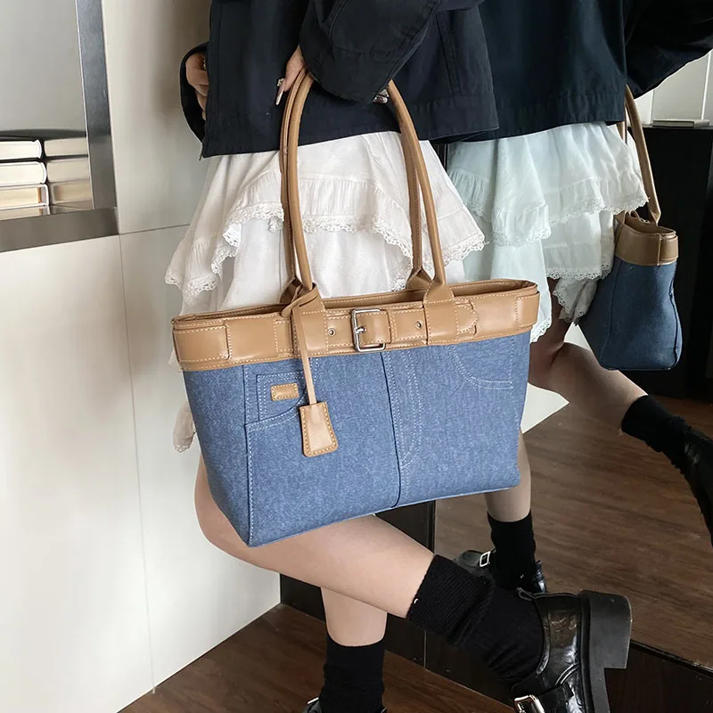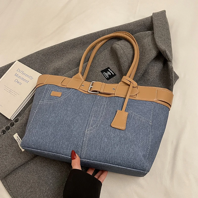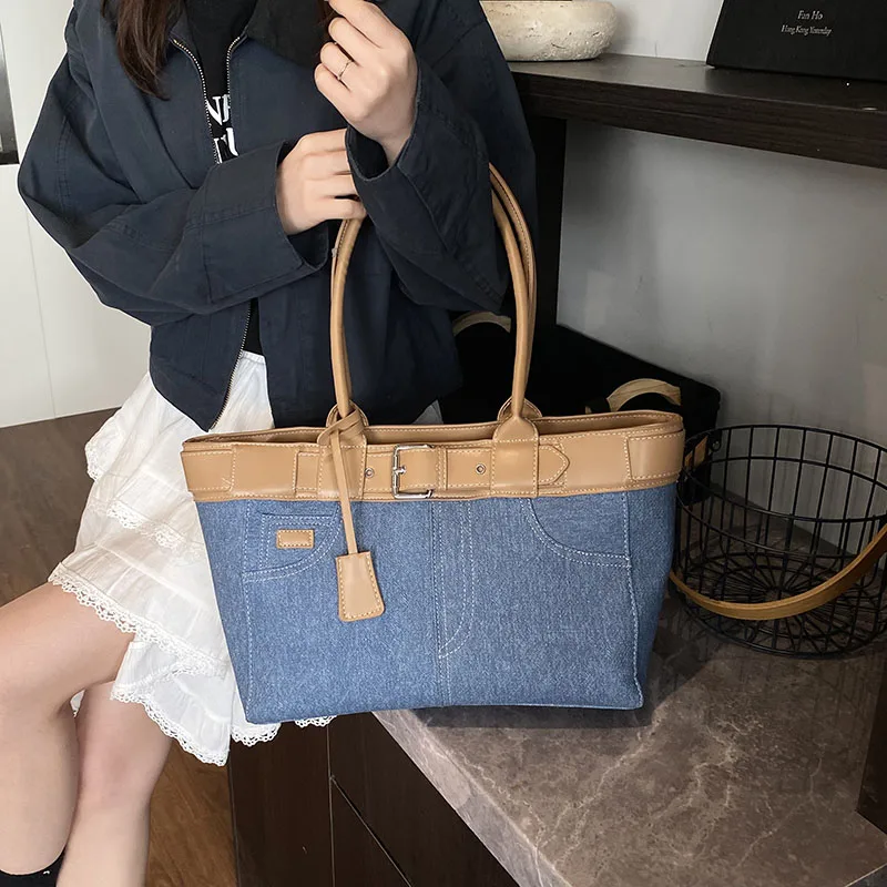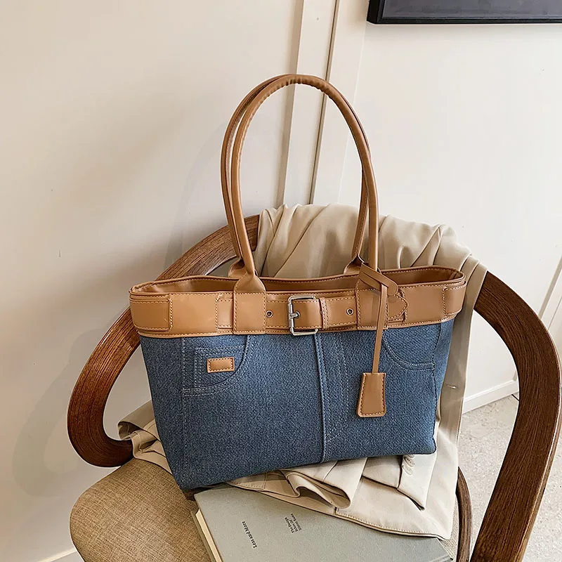 Large Capacity Women’s Denim Retro Tote