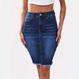 Women’s High Waist Casual Stretch Denim Jean Skirt - Dark Blue / XXL is backordered and will ship as soon as it is back in stock.