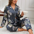 Women’s Satin Floral Pajamas Set – Autumn Long Sleeve Top & Pants Sleepwear | 2-Piece Silk Homewear Pyjama Femme
