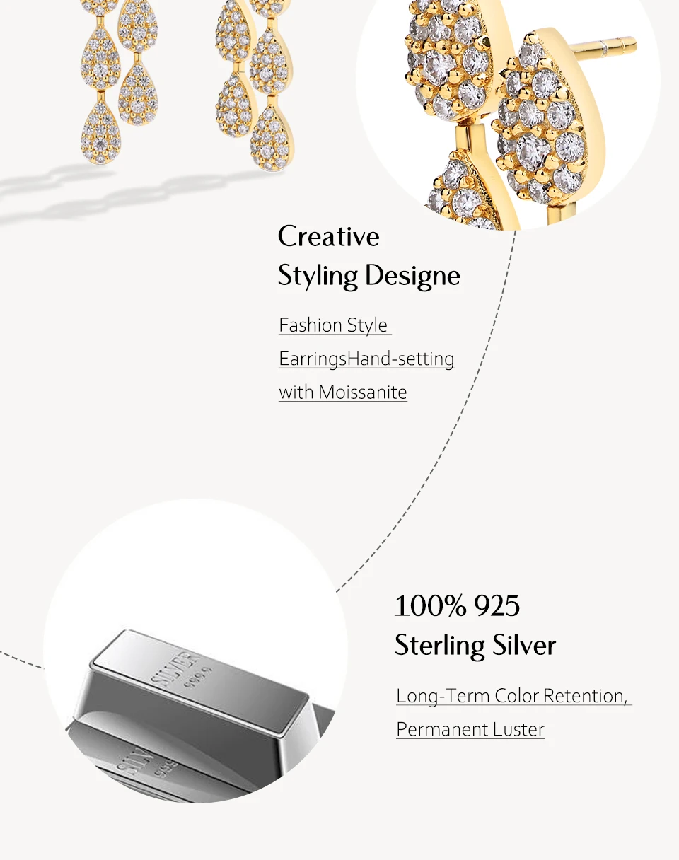 Luxury VVS1 Moissanite Diamond Earrings for Women – 925 Sterling Silver - Yellow Gold / 925 Sterling Silver / CHINA is backordered and will ship as soon as it is back in stock.
