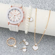 6PCS/Set Women's Watches Casual Silicone Band Analog Quartz Watch Heart Pearls Jewelry Set (Without Box)