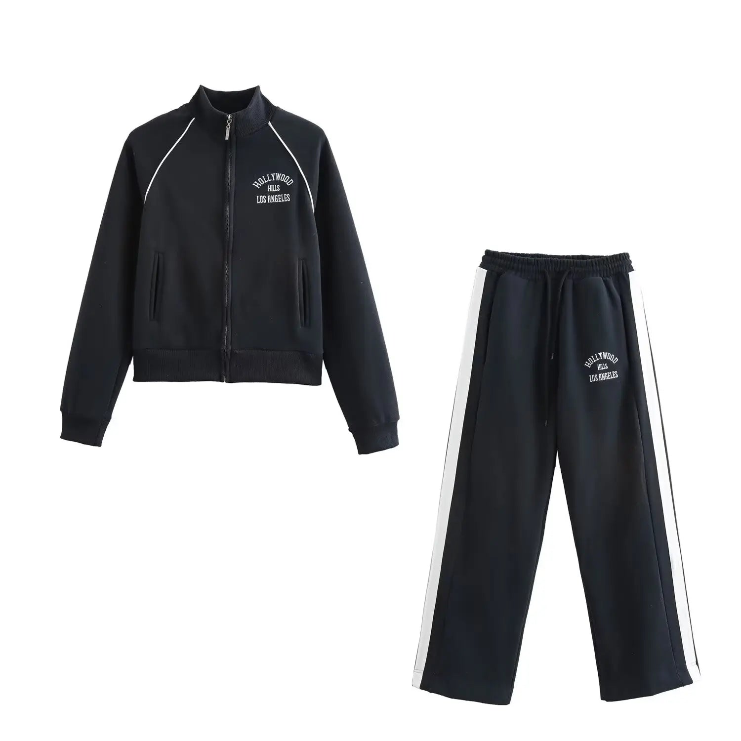 Velvet Two Piece Outfit for Women – Printed Zip Jacket and Casual Pants